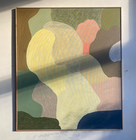 Bien que sa pratique artistique soit essentiellement intuitive et spontanée, Andrea passe par un long processus de mélanges et de superpositions de couleurs, travaillant souvent à partir d’études préalables réalisées sur papier.