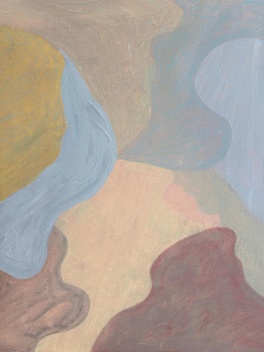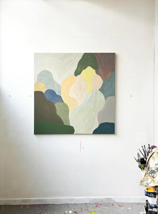 Guidée par une recherche constante d’harmonie entre couleur, matière et lumière, elle accorde beaucoup d’importance aux différentes textures de la peinture, jouant avec des aplats, plus ou moins denses ou transparents, entre rupture et équilibre.