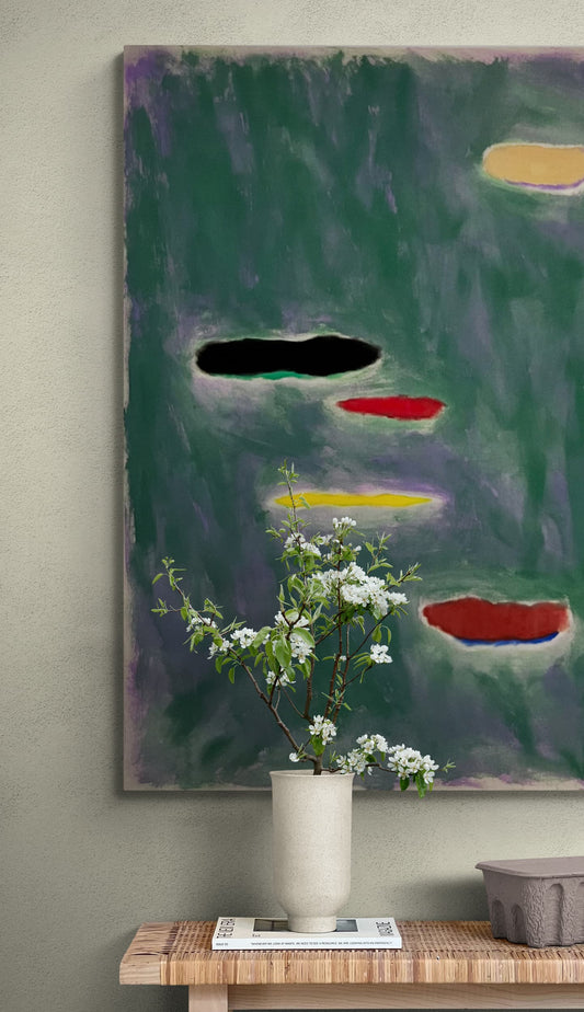 Très sensible à ce que la peinture et son support provoquent chez le spectateur, ses compositions chromatiques font écho à nos émotions, nous invitant à ressentir et à interpréter chaque forme de façon très personnelle.