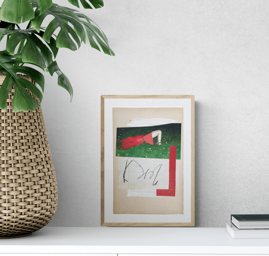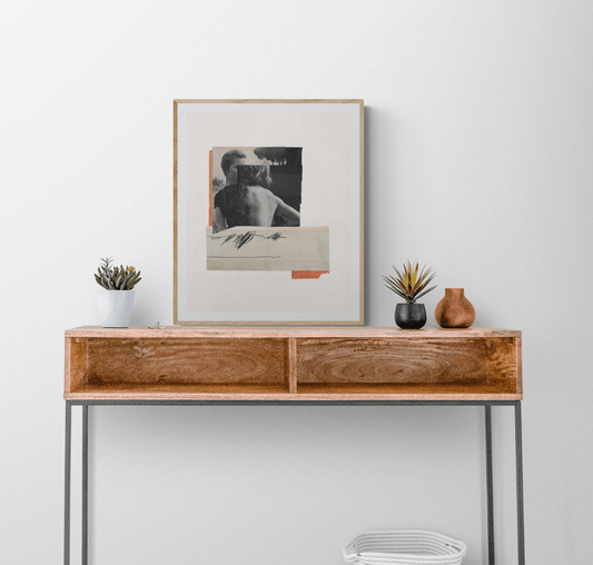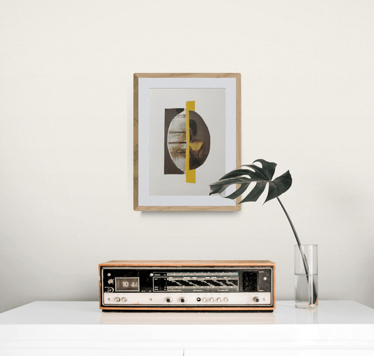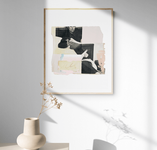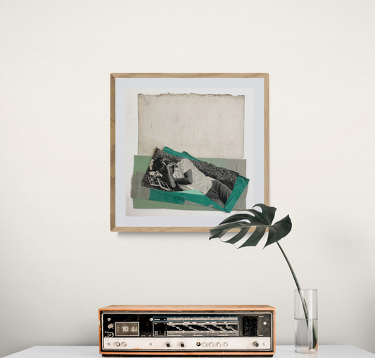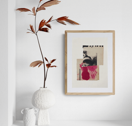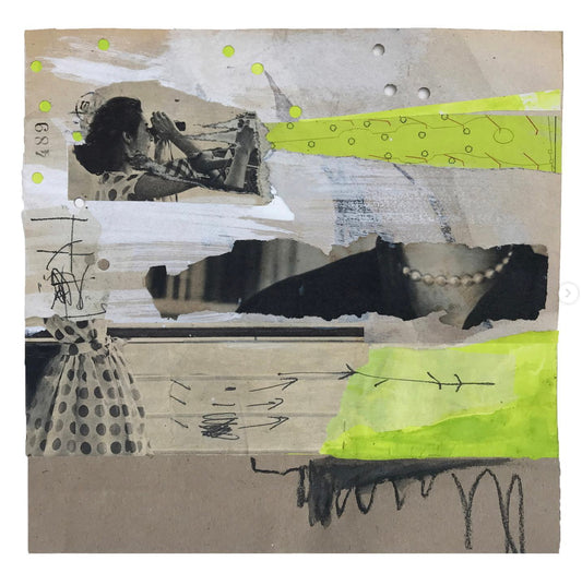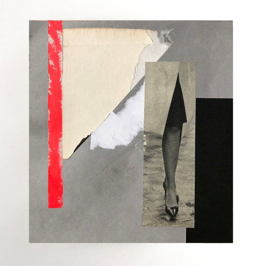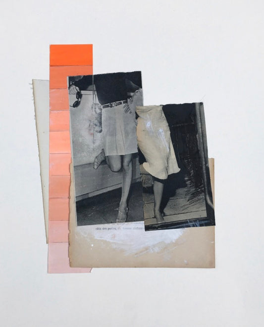 Réalisés à partir de matériaux vintage (qu’elle affectionne pour leurs matières, leurs textures, leurs altérations et le sentiment particulier qu’ils dégagent) et associés à des éléments plus contemporains, ses collages lui permettent de créer des tensions et de jouer avec la temporalité.