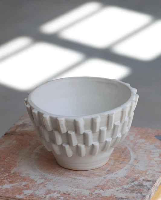Attirée par l’esthétique sous toutes ses formes, elle se forme aux arts appliqués à Paris avant d’embrasser pleinement la céramique en 2022, séduite par cet art exigeant et intuitif, et animée par un besoin profond de créer de ses propres mains.
